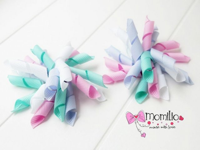 Śliczne spinki do włosów sprężynki wykonane z kolorowych wstążek Dla małych i dużych dziewczynek :)