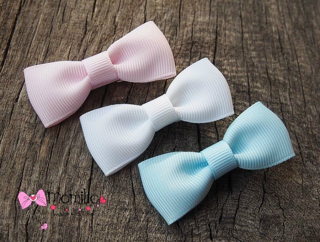 Spinki do włosów kokardki biała, pudrowy róż, błękitna