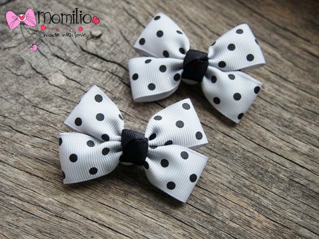 Spinki do włosów kokardki szare w czarne kropki
