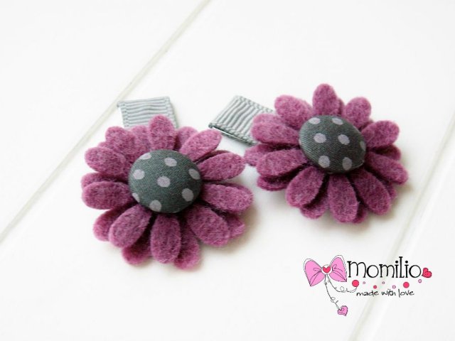 Kwiatuszki z filcu merino ozdobione guzikiem