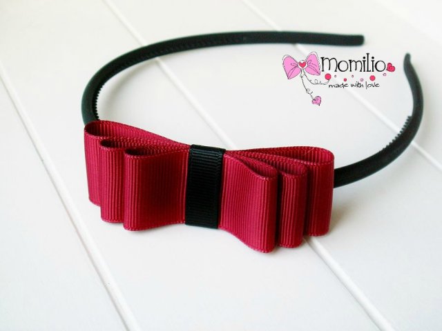 Śliczna opaska do włosów z kokardką w kolorze czarno bordowym