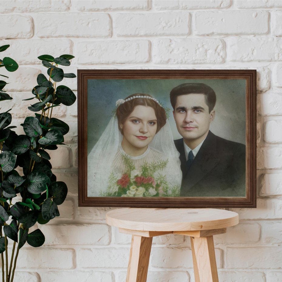 Podaruj personalizowany portret ślubny inspirowany pamiątkami z domów naszych dziadków – unikatowe monidło, które wzruszy, rozbawi i zostanie z obdarowanymi na długie lata.