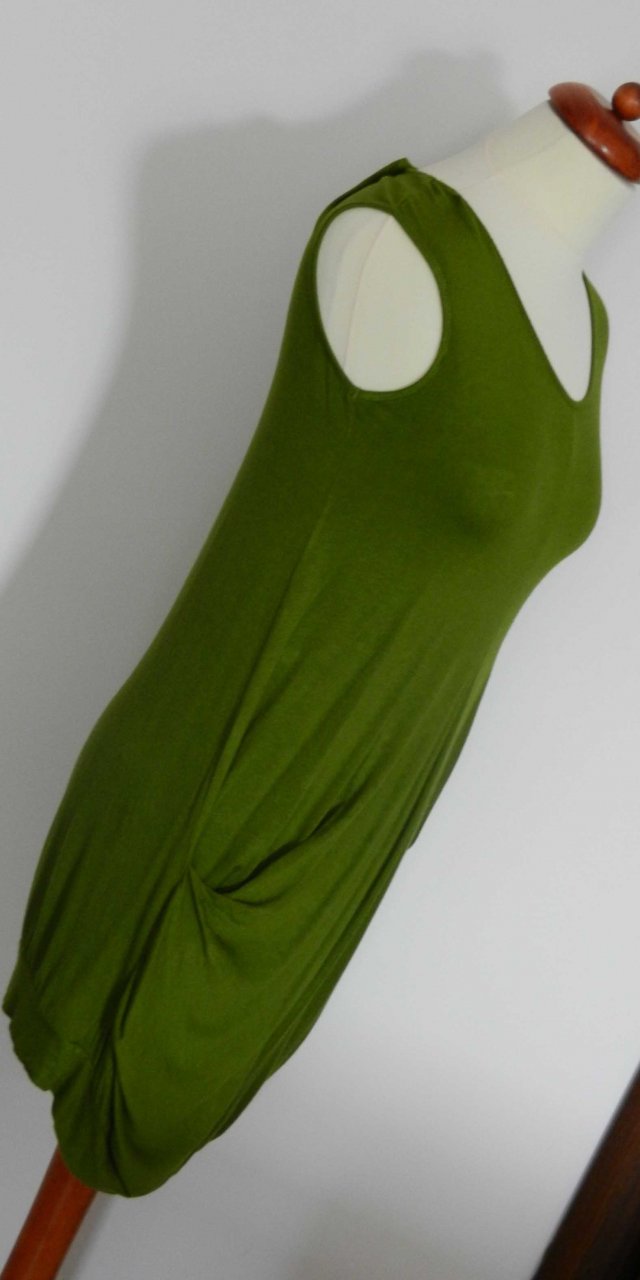 Tunika ma dłuższy przód. Dół można podwinąć bądź opuścić - tak jak pokazane na zdjęciu. Po obu stronach kieszonki.