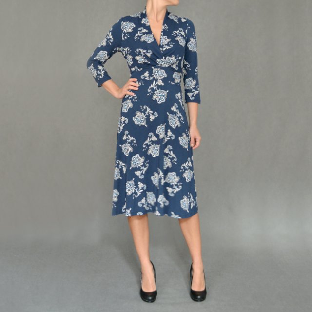 Śliczna granatowa sukienka marki MONSOON w kwiaty. Bardzo ciekawy dekolt. Polecam.