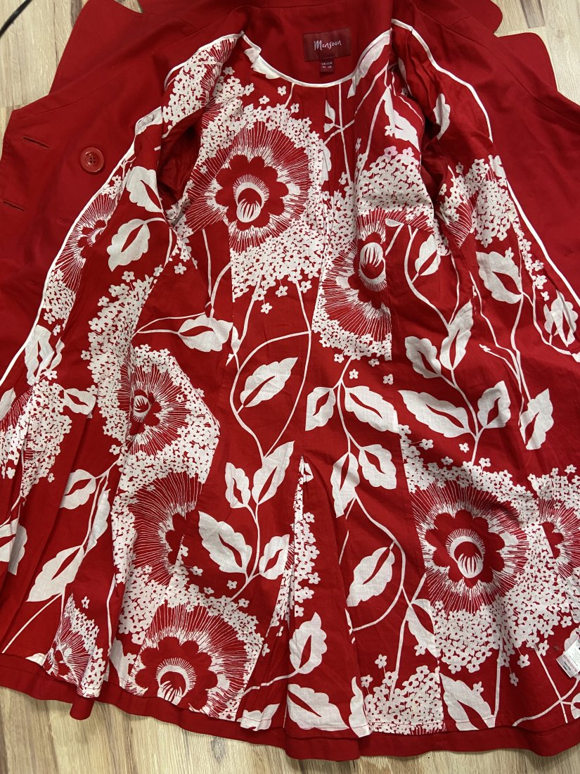Naturalny, piękny płaszczyk marki Monsoon. Na kwiecistej podszewce (też bawełna), w rękawach podszewka z acetatu. Jakość sztooosik!