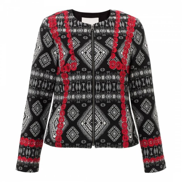 Piękna, żakardowa kurtka, zdobiona haftem, zapinana na zamek. Stan idealny.
