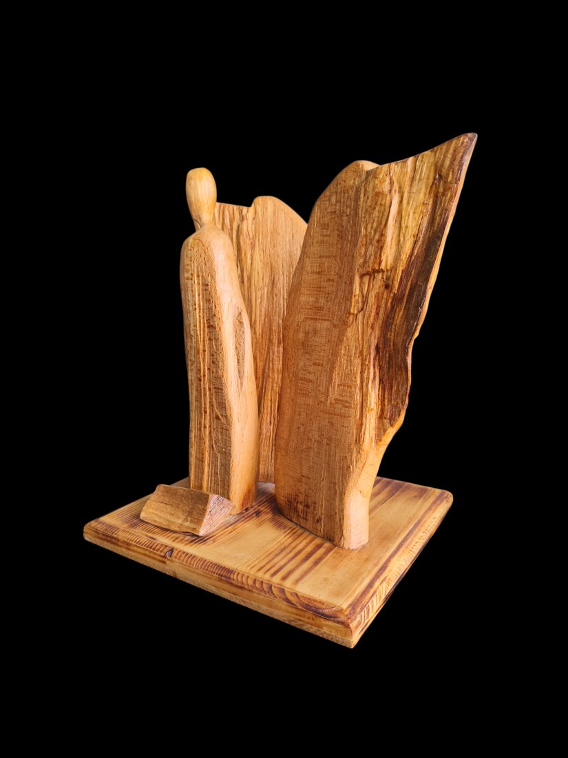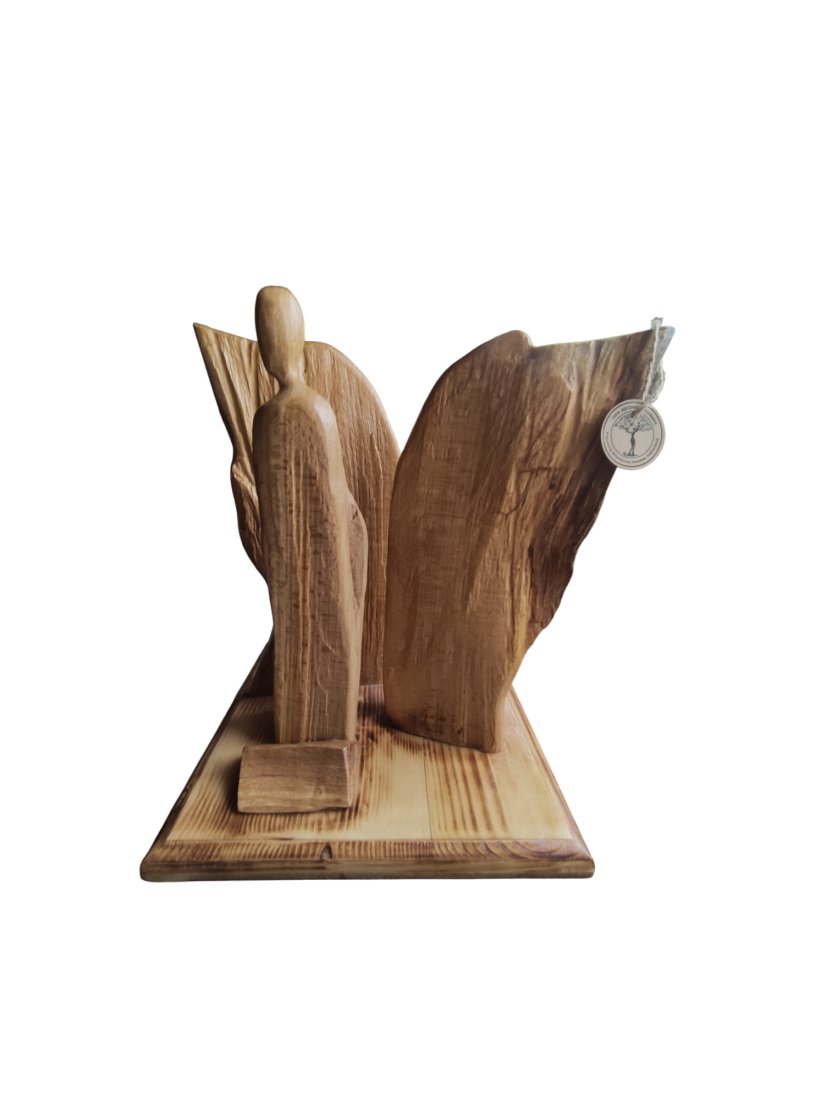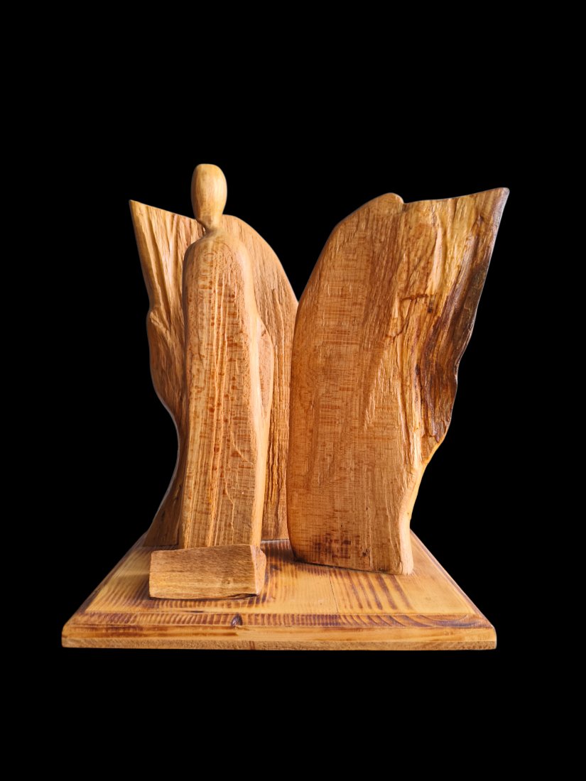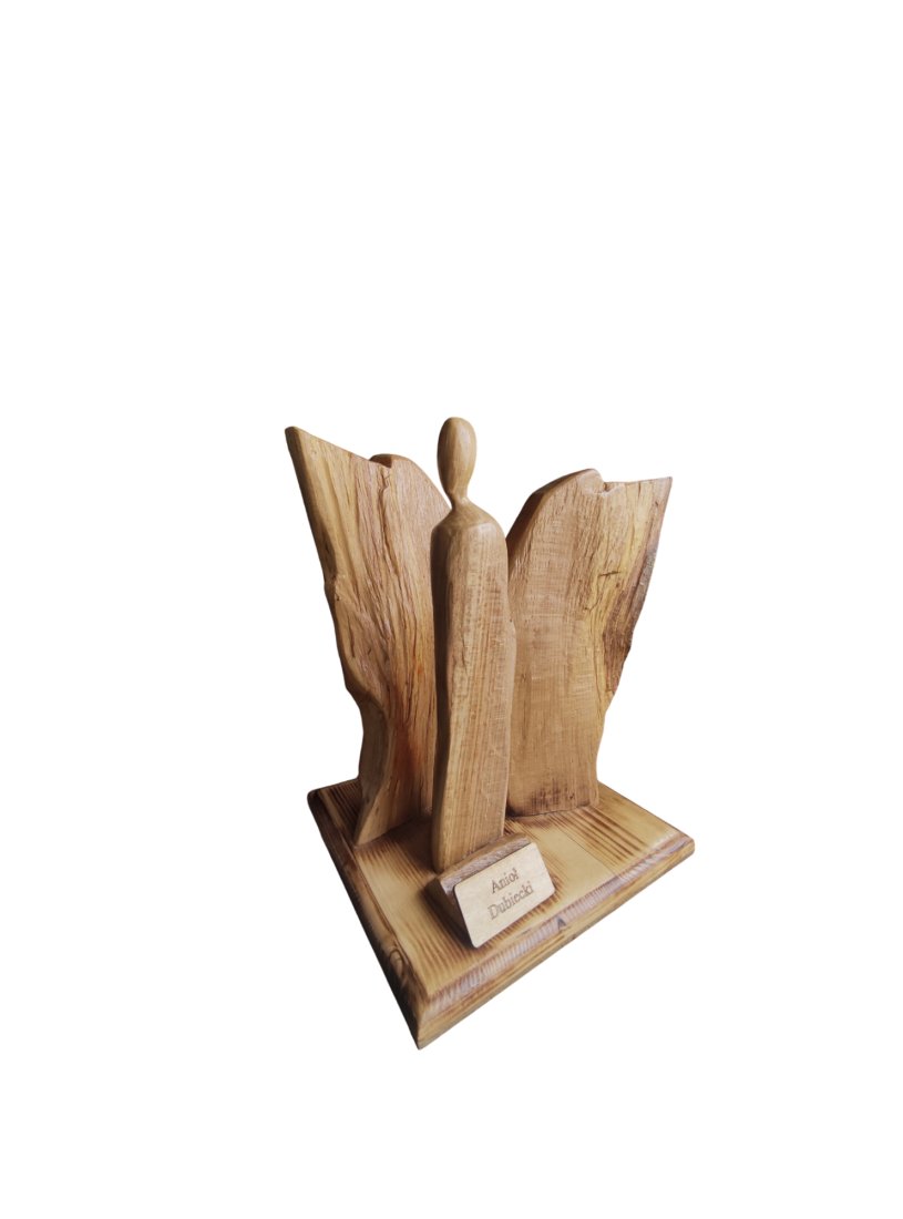 To potężna, masywna praca, która łączy w sobie surowość drewna z delikatnością anielskiej opieki, stanowiąc unikalny akcent w każdym wnętrzu.