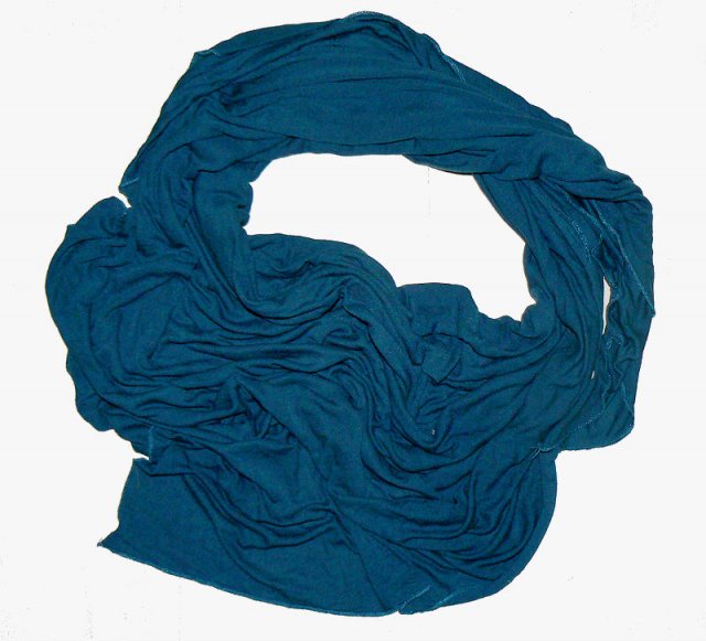 Bardzo duża chusta z lejącej wiskozy w ciemnym morskim kolorze.