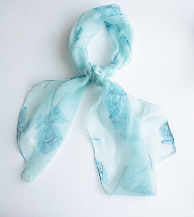 Zwiewny, bardzo kobiecy szal typu mgiełka w odcieniu morskich fal.