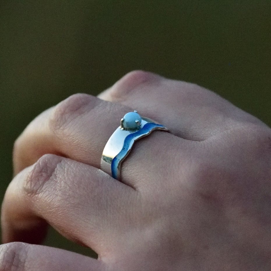 PIERŚCIONEK AKWAMARYN REGULOWANY STAL CHIRURGICZNA HANDMADE