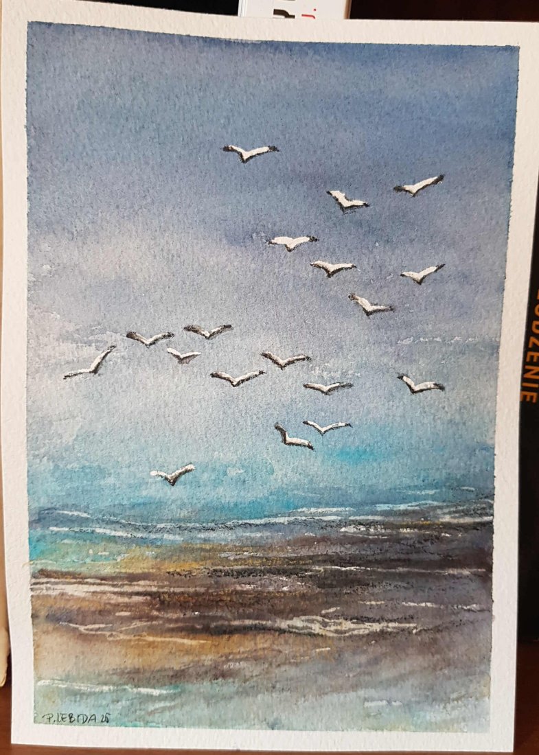 Praca wykonana farbą akwarelową na papierze akwarelowym 300g/m2, format A5. Zapraszam :)