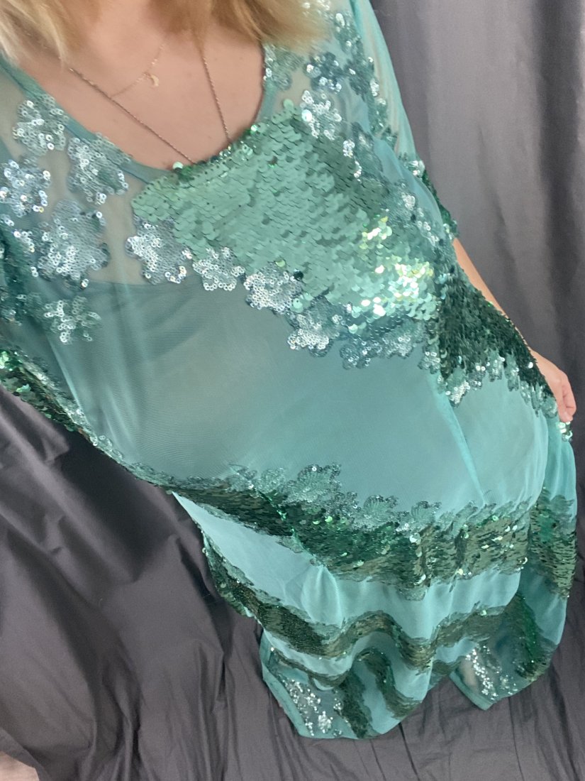 Boooska siateczkowa sukienka wyszywana cekinami (tutaj ubrana na inną sukienkę - można na ozdobną bieliznę ubrać bądź na dowolną dopasowaną sukienkę bazową).