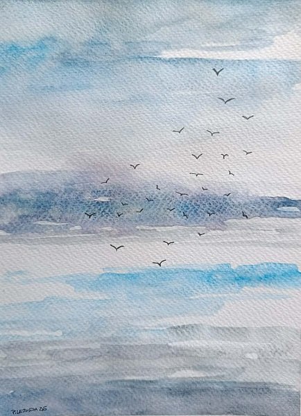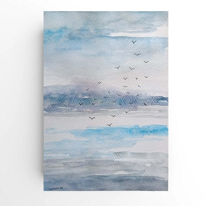 Praca wykonana farbą akwarelową na papierze akwarelowym 300g/m2, format 24/18 cm. Zapraszam :)