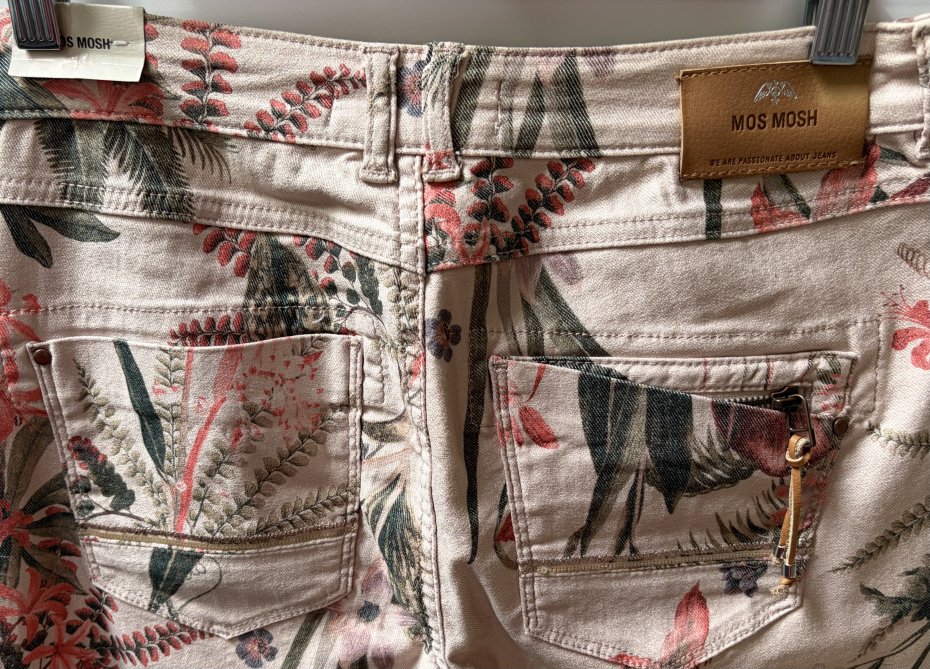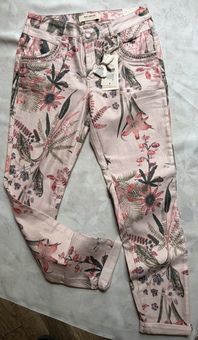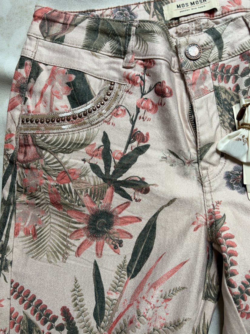 Mos Mosh Passion Love Heart 76% cotton 22% polyester 2% elastane . Nowe ze wszystkimi metkami . PO 12395/126850 NAOMI SHINE FLOWER PANT MAK089. Talia 38 biodra 48 udo 27 długość do podwinięcia 95 długość całkowita 100 cm . Stan zachowania - bardzo dobry , nowe . Wszystkie metki , również sklepowe , oraz zapisowy guzik obecne . Uwaga !!! Kolory nieco się zmieniają w zależności od światła .
