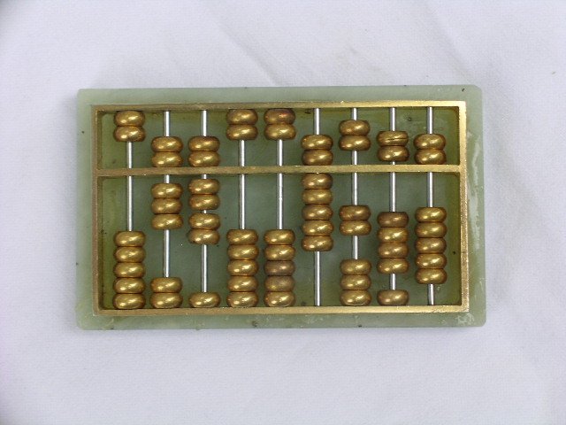 Wyśmienite niewielkie liczydło, w świetnym stanie zachowania. Mosiężne paciorki kalkulacyjne i zielony, ciężki prostokąt marmuru. Lekkość przesuwania i przyjemny dźwięk :) Doskonały jako przycisk do papieru. 9 x 5,2 x 1,7 cm. Stan zachowania bardzo dobry.