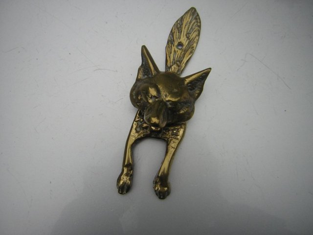 Szlachetnie mosiężna KOŁATKA do Drzwi. Ozdoba nie spotykana...Lisek chytrusek symbolicznie Domu pilnujący...i zastukać można ;) Ciekawa, ładnie wykonana. Dziurki dwie na śrubki do przykręcenia.