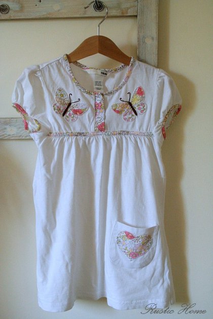 Urocza tuniczka dla dziewczynki marki H&M. Biała z motylkowymi aplikacjami. Na dole kieszonka.