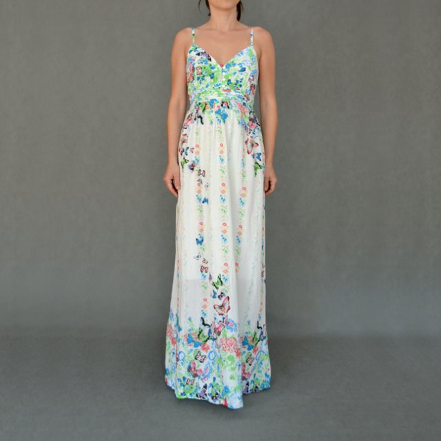 Śliczna sukienka maxi w motylki. Bardzo letnia i wesoła. Z tyłu gumka i wiązanie. Polecam.