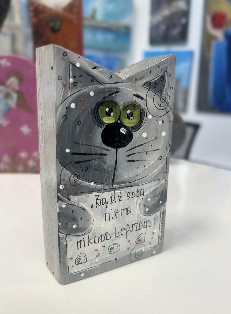 Malowany wysokiej jakości farbami akrylowymi i zabezpieczony ekologicznym lakierem, stanowi ciepłą i pełną uroku dekorację, która dodaje humoru oraz pozytywnej energii każdego dnia.