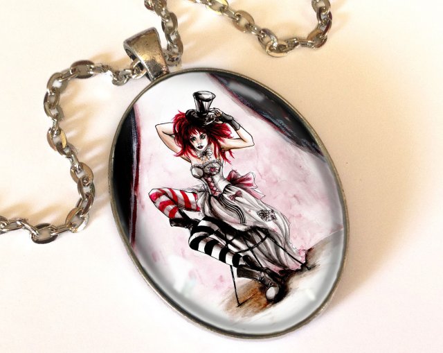 Ręcznie robiony duży owalny medalion z wysokiej jakości grafiką.