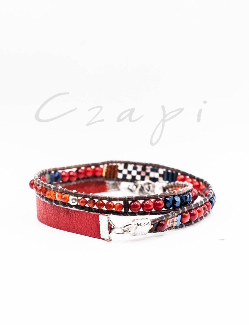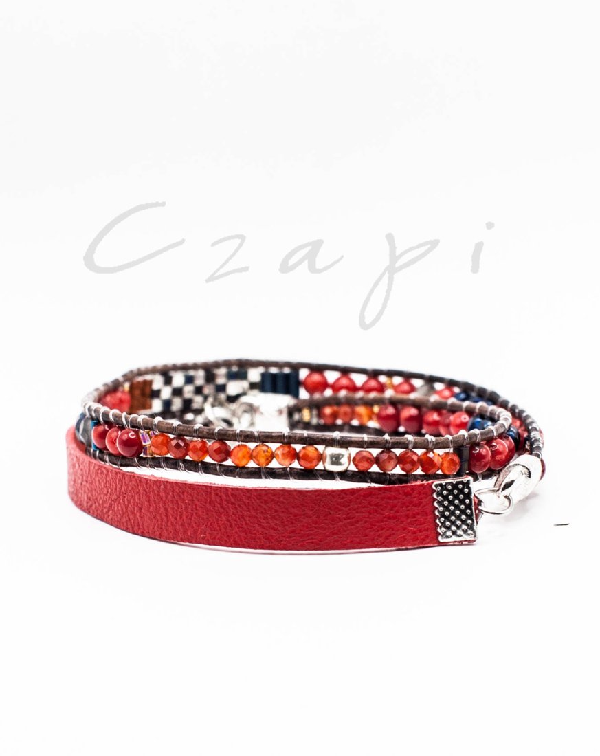 koral czerwony w połączeniu nieoczywistym z ognistym karneolem