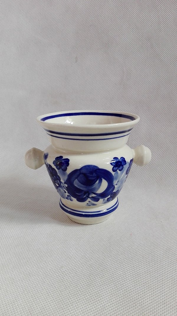 Moździerz z ceramiki, malowany w kwiaty typu Włocławek.