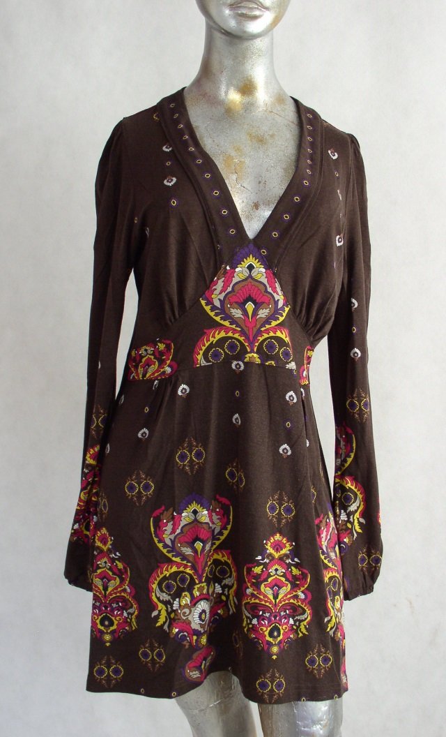 Sukienka-tunika firmy MSMODE.Materiał 92% wiskoza+8% elastan.Rozmiar L.Z przodu pod biustem wstawiony karczek,marszczenia pod biustem,.Rękaw długi,prosty,marszczony gumką na końcu.Stan bardzo dobry.Długość 84 cm.pod pachami 104 cm.