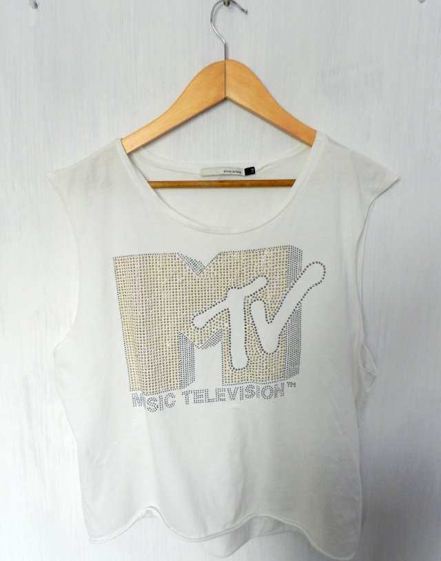 T-shirt w prostym fasonie z logo MTV w kolorze srebrno -złotym