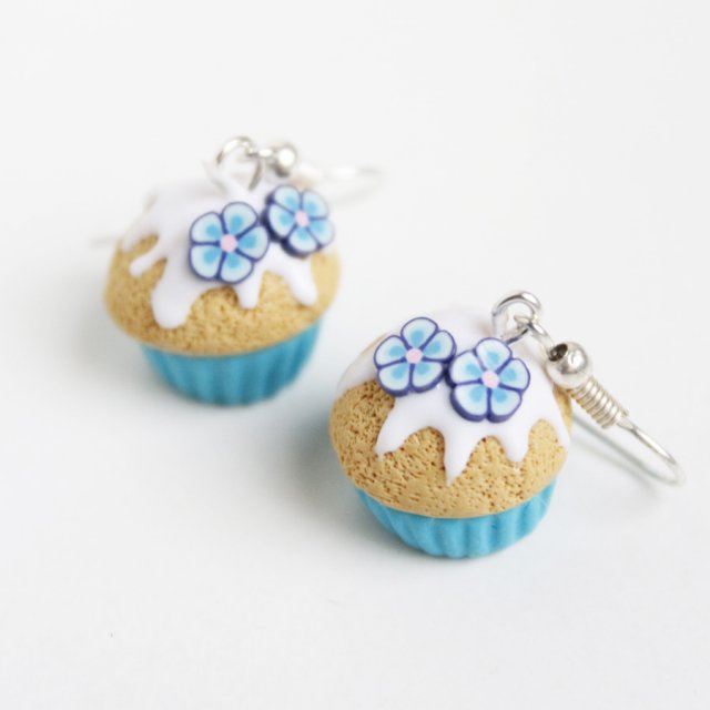Przeurocze, bardzo lekkie kolczyki - muffiny wykonane ręcznie z masy termoutwardzalnej. Bigle i elementy posrebrzane . Długość kolczyków bez bigli to 1,8cm, szerokość około 1,8 cm. Muffinki wyglądają bardzo realistycznie i przyciągają uwagę. Wysyłam ozdobnie zapakowane