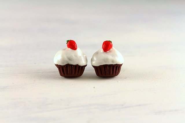 Witaj w moim sklepie. Mam do zaoferowania własnoręcznie wykonane z masy termoutwardzalnej fimo kolczyki sztyfty - słodkie muffinki z truskawkami. Całość zabezpieczona werniksem.