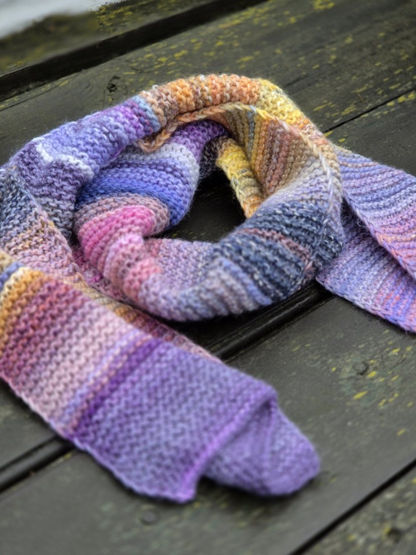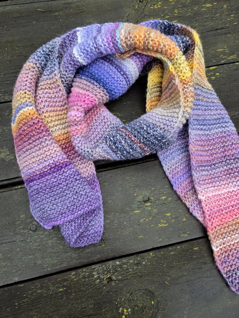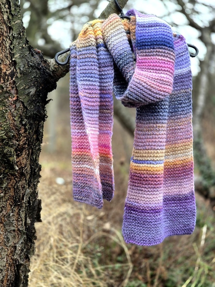 Można się nim otulić! Miękki i ciepły szal- długi i szeroki. Wykonany ręcznie na drutach z włoskiej włóczki: 53% wełna merino, 47% akryl.