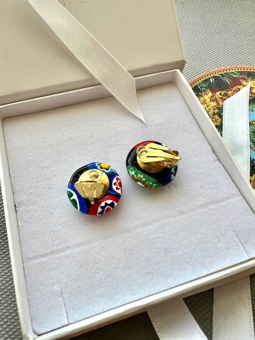 Murano Millefiori Clip Earrings ❤ Art Glass ❤ Bardzo ciekawe klipsy marki Murano, marka słynie z wyjątkowego szkła ręcznie wytwarzanego.