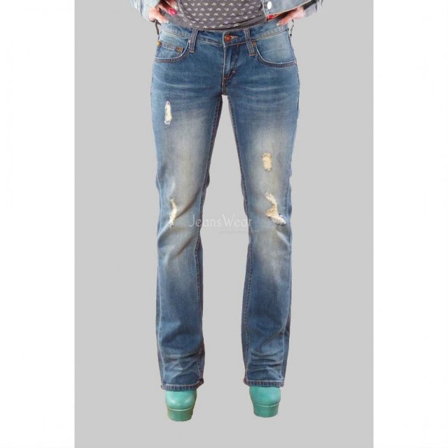 Fason z prostymi nogawkami. Lekko przecierane i fabrycznie strzępione z przodu.