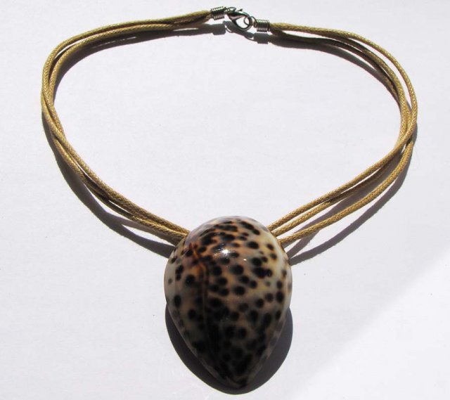 Naturalna muszla [4x 6 cm] na beżowych woskowanych sznurkach [obwód 35 cm]