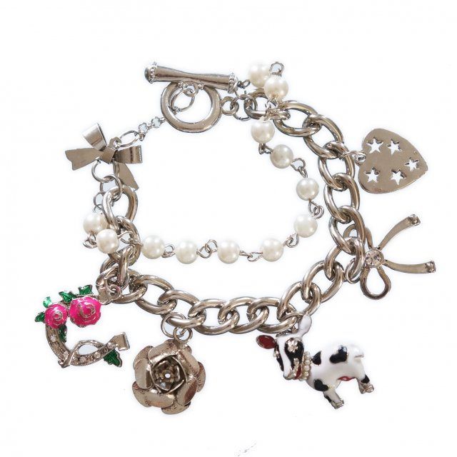 Podwójna bransoletka z uroczymi zawieszkami na łańcuchu