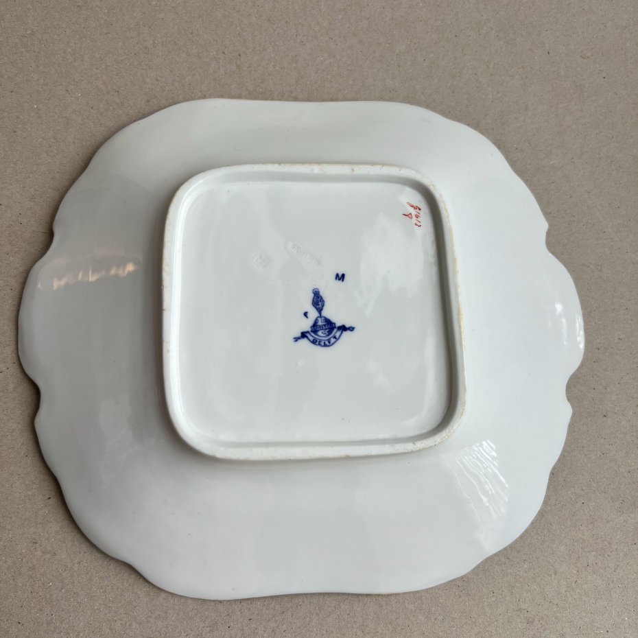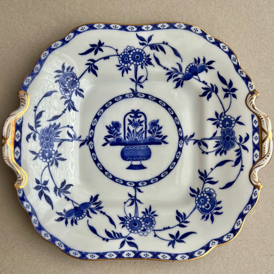 Patera to piękny przykład dawnej elegancji stołowej w doskonałym guście. Piękna linia i kształt kwadratu, czyni z tej patery kunsztowną elegancję stołu w pełni użytkową. Piękne kwiatowe ręczne zdobienia w kobalcie. Idealna na ciasta, słodkości, wszystko czego dusza zapragnie, również do celów ozdobnych.