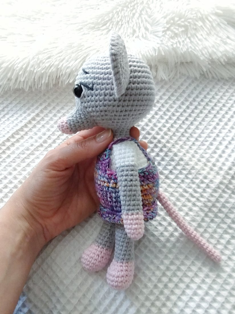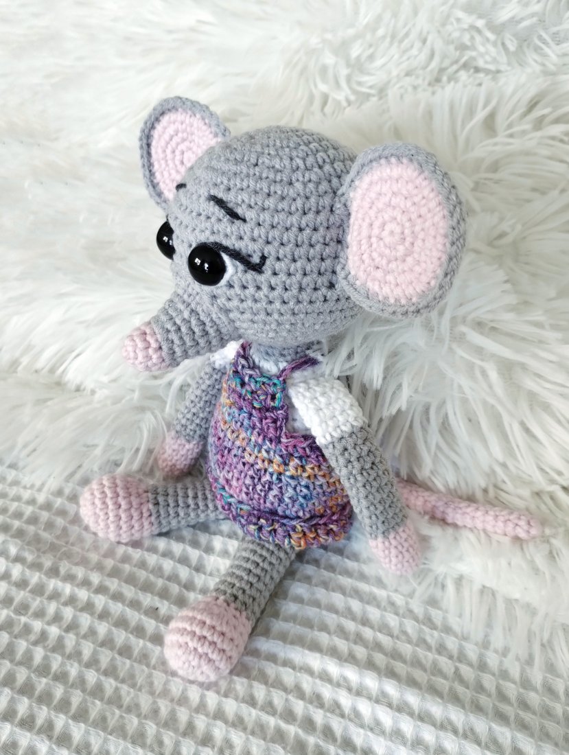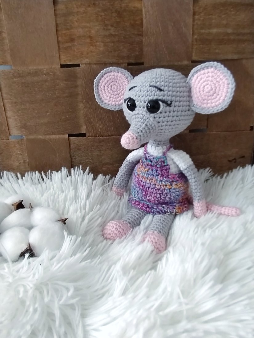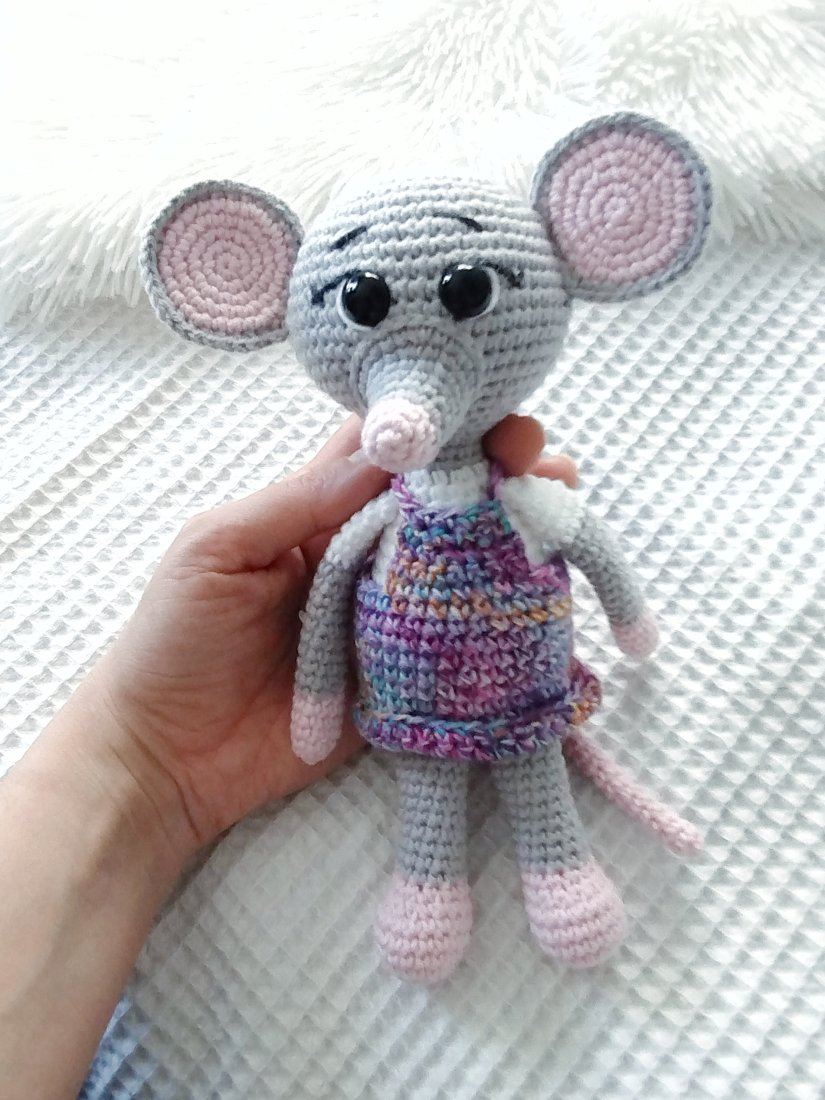 Szydełkowa myszka ze zdejmowaną sukienką to urocza zabawka dla każdego malucha.