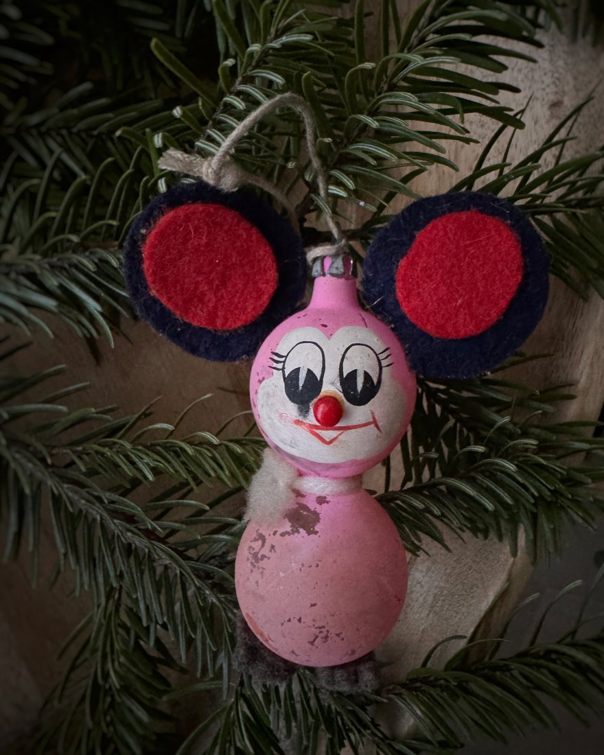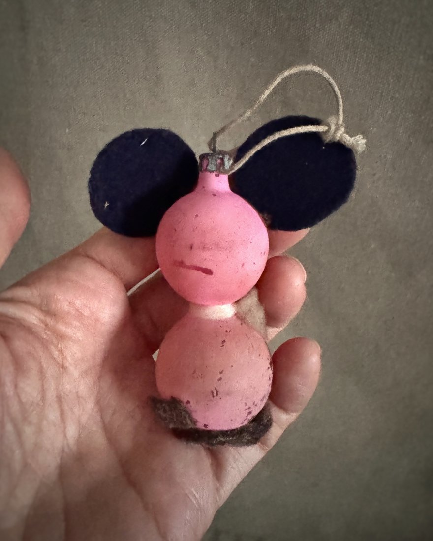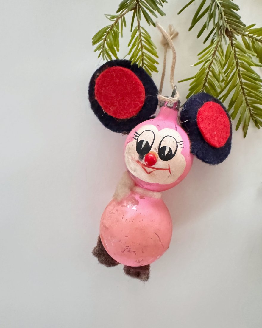 Myszka bombka szklana ręcznie malowana tzw. ,kształtka’ kultowa bombka z okresu PRL.