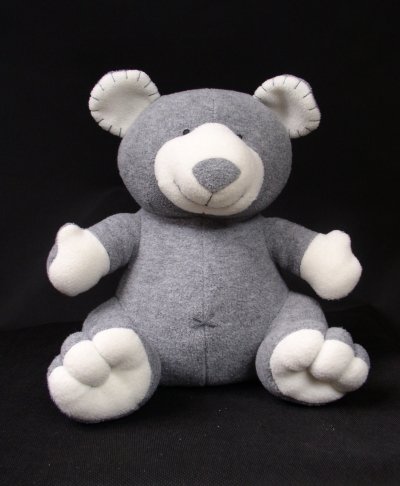 Szaro-biały miś ,uszyty z polaru.Siedzący.Miękki i sympatyczny.Stan bardzo dobry-.Wysokość 26 cm.