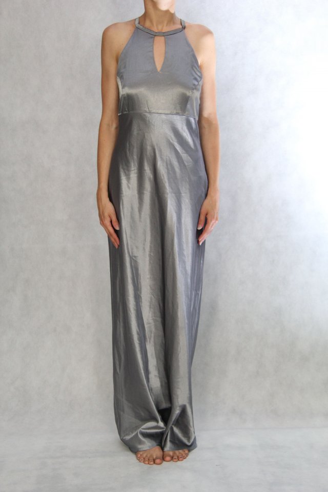 Lekka sukienka w kolorze srebrnym. Idealna na wesele, wieczorne wyjście latem.