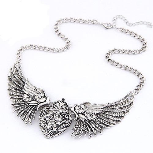 Naszyjnik w kolorze starego srebra z bogatym zdobieniem i błyszczącymi kryształkami.