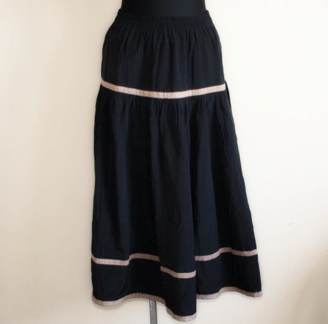 Spódnica szwedzkiej marki Ahlens. W pasie szeroka guma. Materiał 60% wiskoza, 40% poliester. Ozdobiona beżową taśmą. Stan bardzo dobry. Rozmiar z metki 42/44, ale chyba lepsza dla rozmiaru 38/40. Podaję wymiary mierzone na płasko;