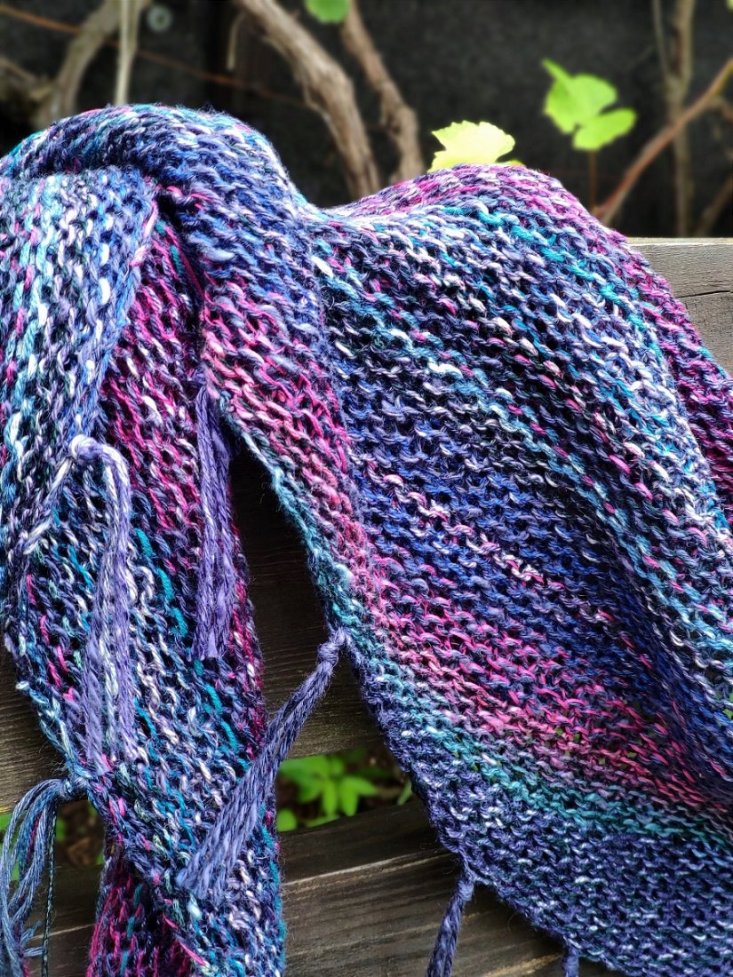 Chustkę wykonałam na drutach mieszając kolory między sobą- jedyny egzemplarz.