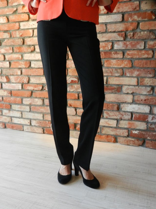 Eleganckie spodnie na kant. Lekko elastyczne. Nogawka zwężana.