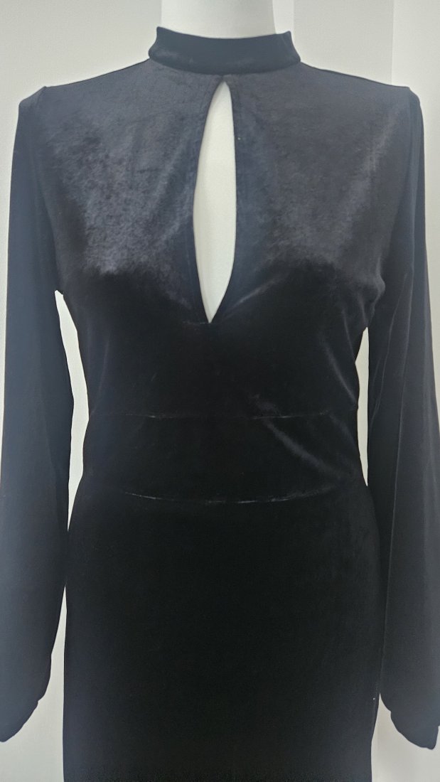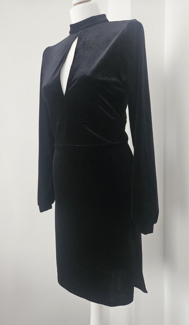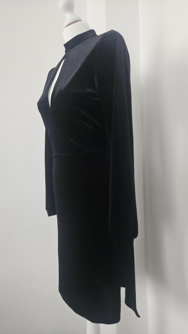 Welurowa sukienka, pięknie się prezentuje.
