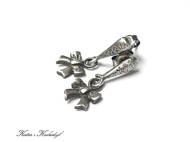 Kolczyki -sztyfty wykonane w całości ze srebra [pr.925] w Całość oksydowana i przetarta.Całkowita długość kolczyków 2,3cm.Biżuteria ozdobnie zapakowana.