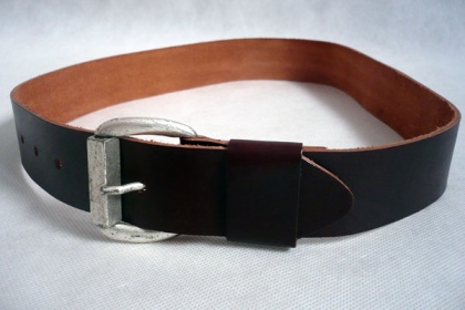 Solidny pasek uszyty z grubej skóry.Metalowa-srebrna klamra [celowo postarzona].