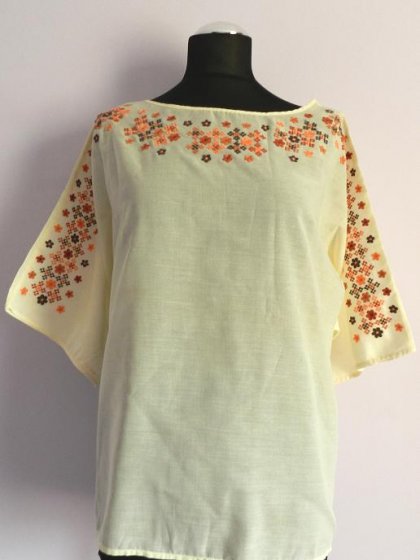 Bluzka w ludowym stylu, materiał;wiskoza,kolor ecru, Na górze wyhaftowane kwiaty, stan bdb, prosty krój
