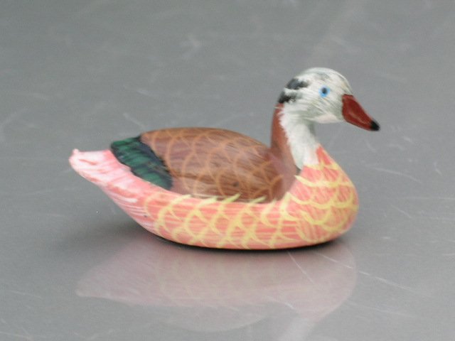 Drewniany drobiazg - pan kaczka, ręcznie malowany, na satynowo lakierowany. Leciutki, piękny, do ukochania. Do kolekcji, na szczęście,na prezent :)