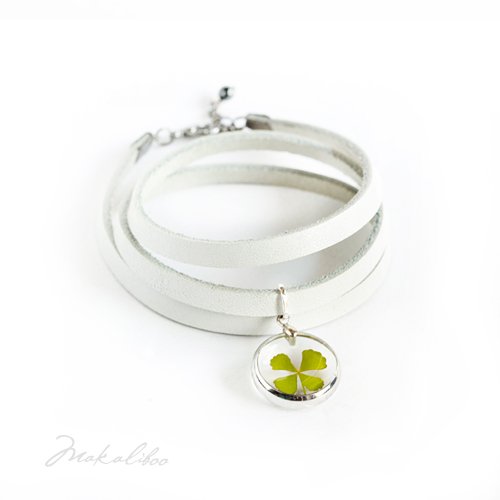 Cherms o średnicy 18 mm, kryje w sobie prawdziwą czterolistną koniczynkę zatopioną w żywicy. Każdy egzemplarz jest niepowtarzalny.